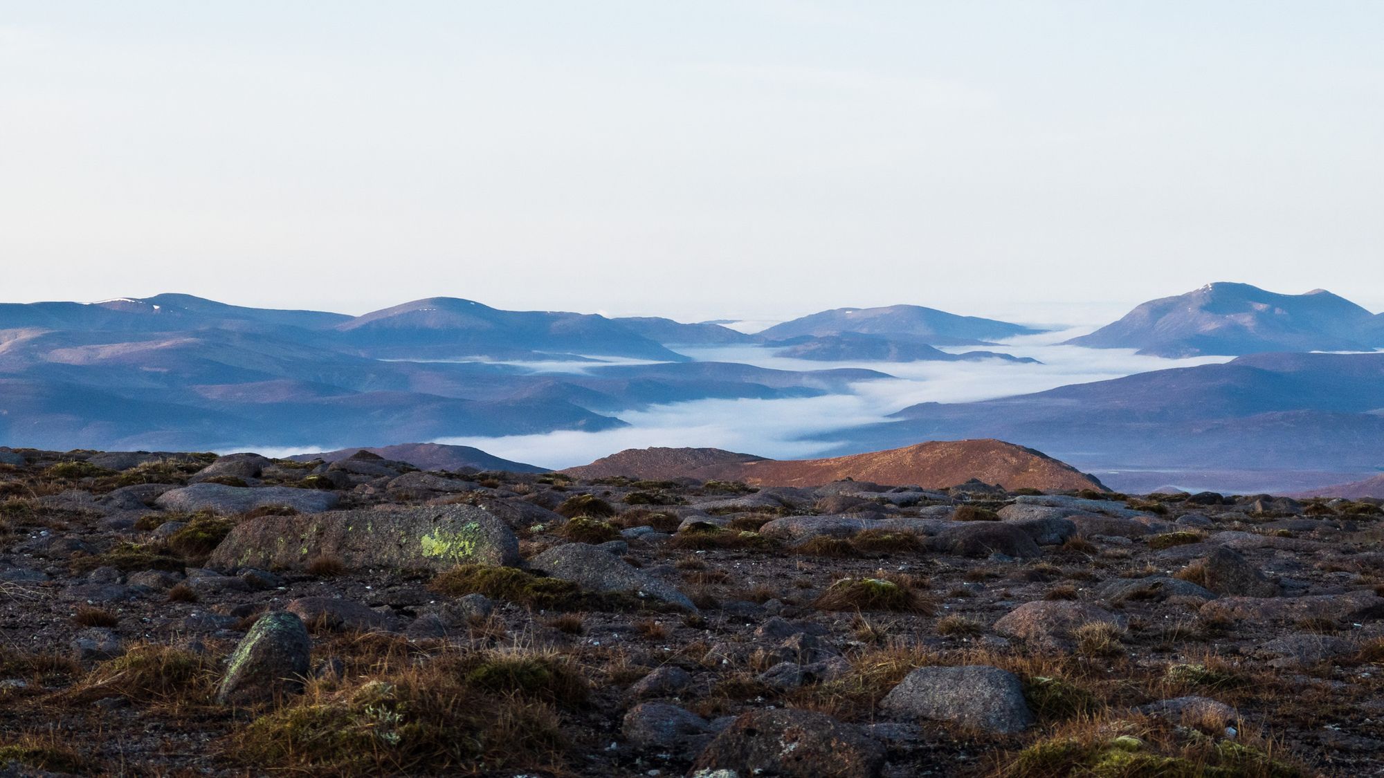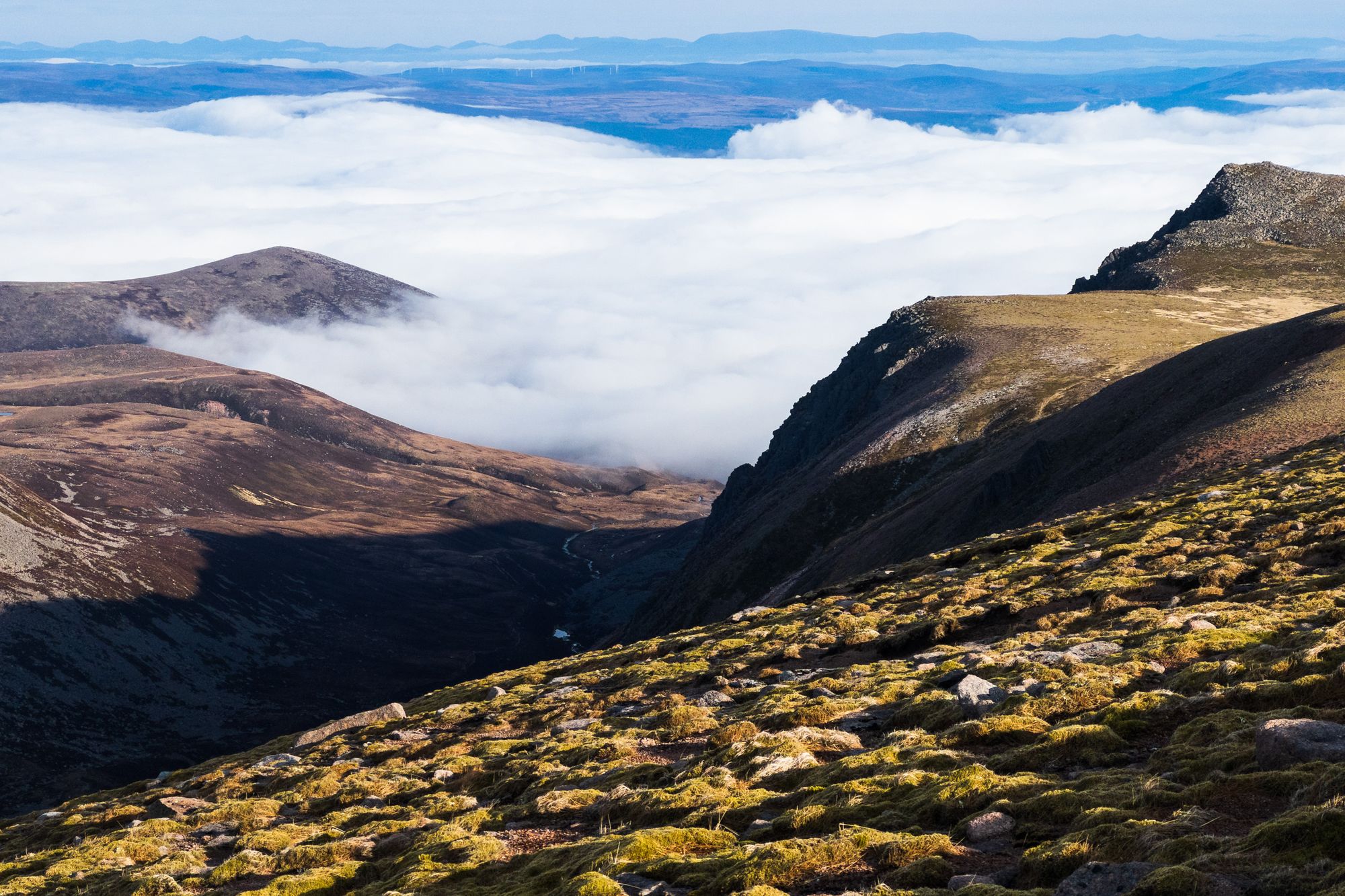 My original plan had been to bivvy somewhere near the bealach, as it was starting to get dark and I'd already done well over 2,600m of ascent, but on a whim I decided to crack on to Ben Macdui. A temperature inversion was trying to form and I wanted to see if I could get above the cloud layer. It's a steep ascent of about 500m up a pathless boulder slope, but I was feeling strong and made quick work of it. This is something that only 18 months ago I'd have never even believed possible – that I could feel so fresh and energetic at the end of a long, long day. I think my crossing of the Alps last summer really changed my perception of what I can do when I'm in the mood.