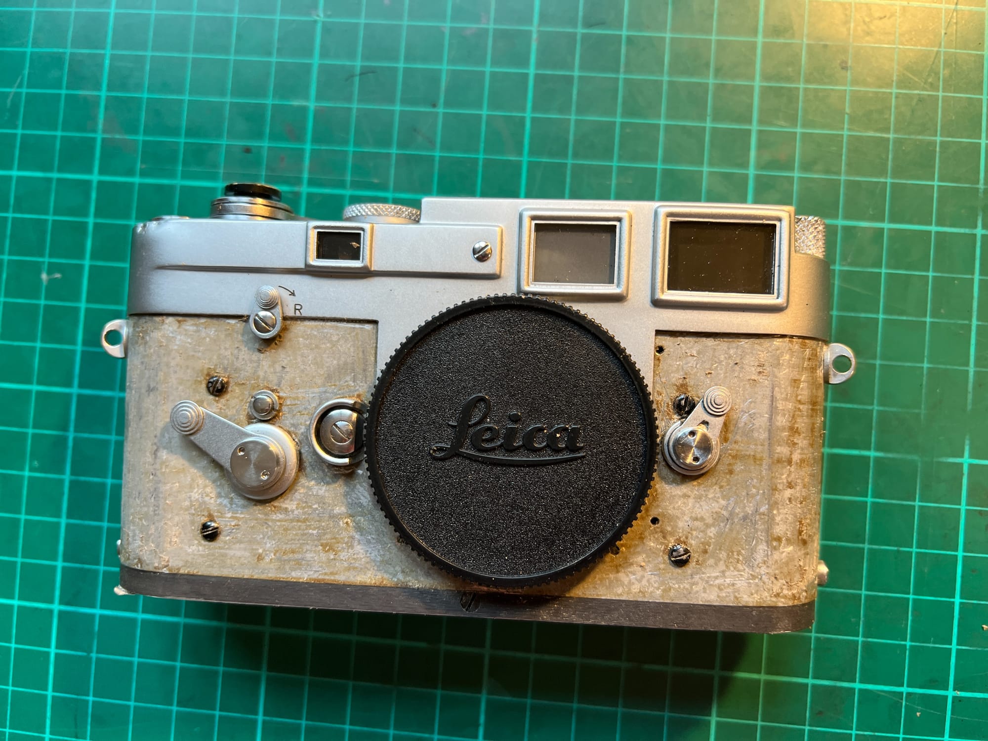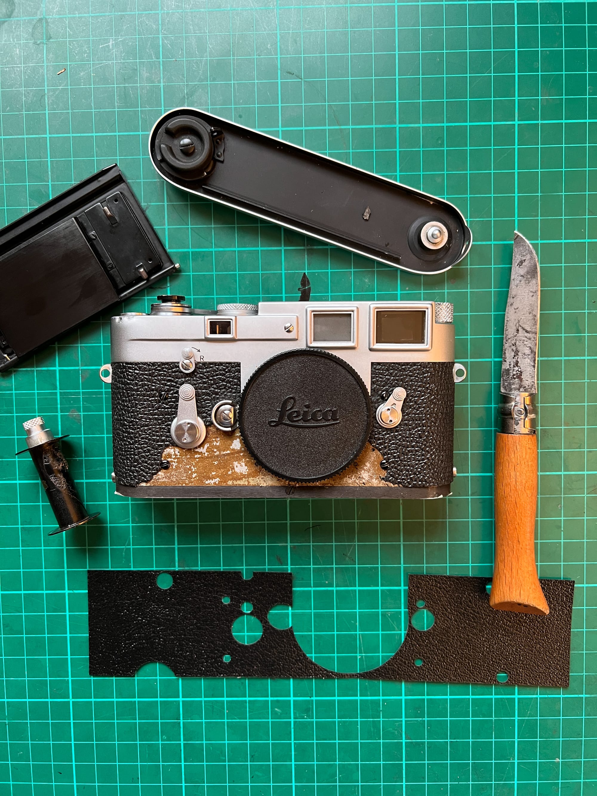 The vulcanite covering began to perish shortly after I bought the camera, so I replaced it with a new skin