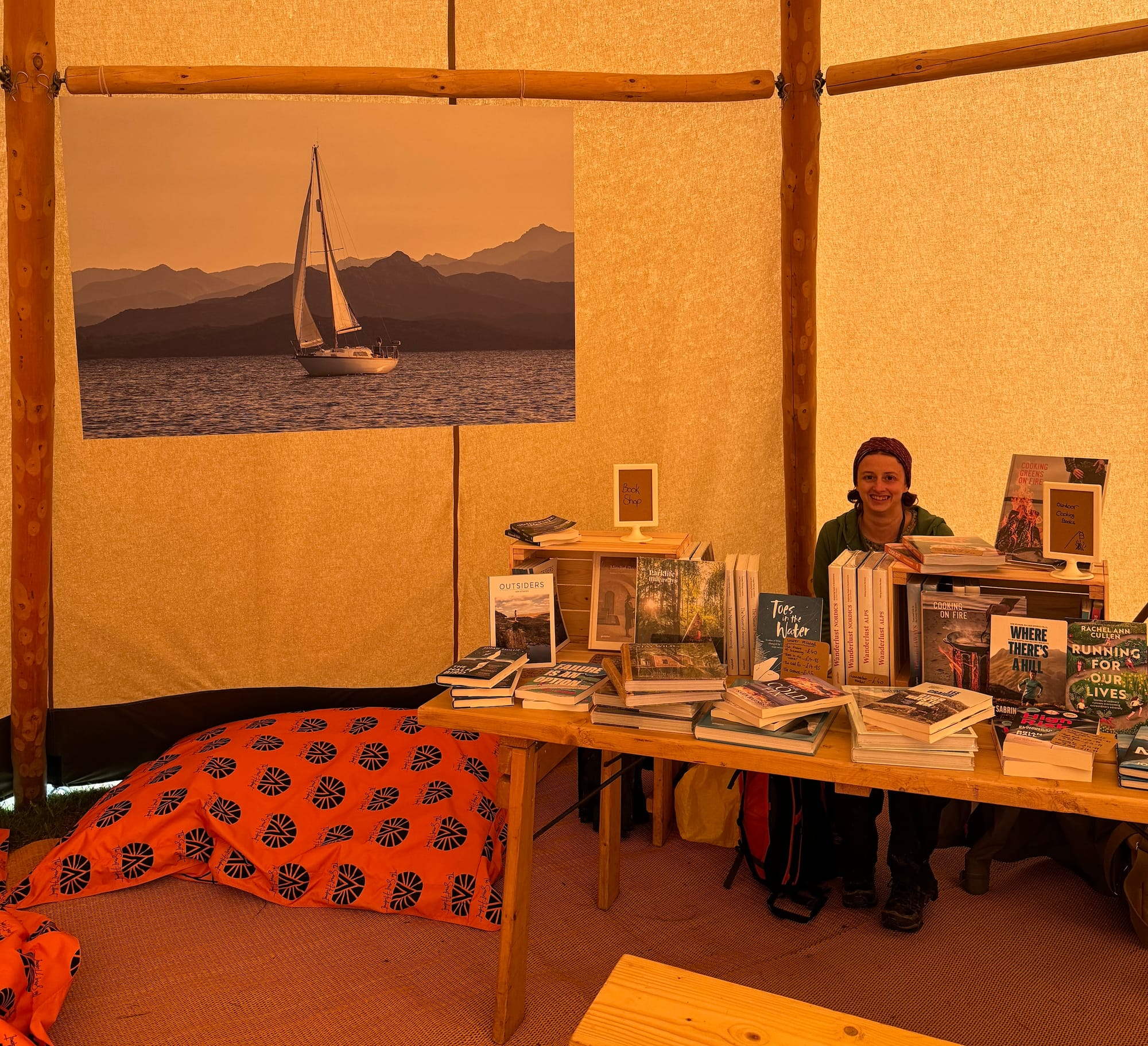 I didn't get the chance to go to any activities beyond Matt and Ellie Green's filmmaking session, but I did help to run all four of the writing workshops, which were held in our lovely little bookshop and library tipi. This proved to be a quiet, chilled space where folk could curl up on a beanbag with a book (one visitor even took a well-deserved nap). Hannah ran the bookshop, and was an asset – not only selling books but also answering questions about them and their writers.