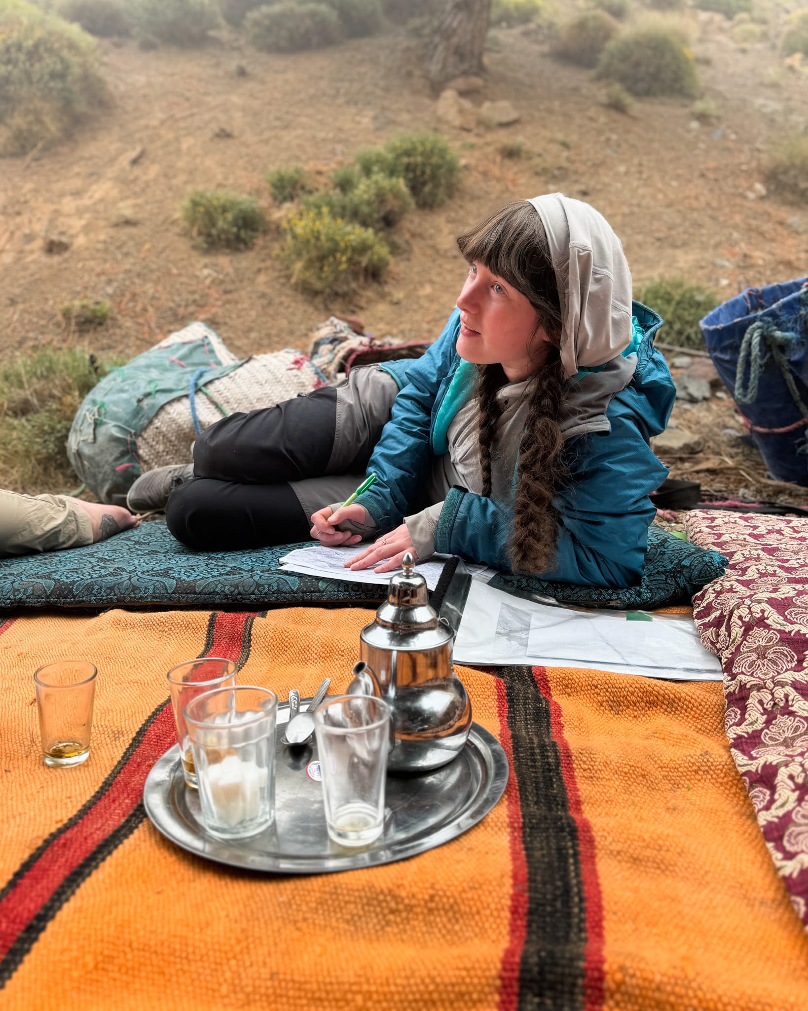 I won't go into all of our incredible adventures and stories here – there are simply too many to recount, and besides, I'm keeping my powder dry for magazine articles. I won't tell you about Piper the freelance mountain dog, or The Big Adventure (including Choss Central, Grand Choss Central, and Sketchy McSketchface), or our friendly rivalry with a group of uni students, or Bugatti Steve, or the silly stories we made up while hiking. I won't write down the long and lovely evening outside Tazarhart Refuge with Faiçal, Emily and Laura, drinking mint tea and chatting while the light turned golden behind the mountains. I won't attempt to describe how it felt to climb my first clutch of 4,000m peaks since I was 22 years old. I won't write about the pristine rippled dunes of gravel we found on the summit of Afella, or the mysterious serpents of Lake Ifni. I won't even try to put down my ever-evolving feelings about the importance and intensity of mountain friendships. Not here. But I will write about all of these things in the proper place and time.
