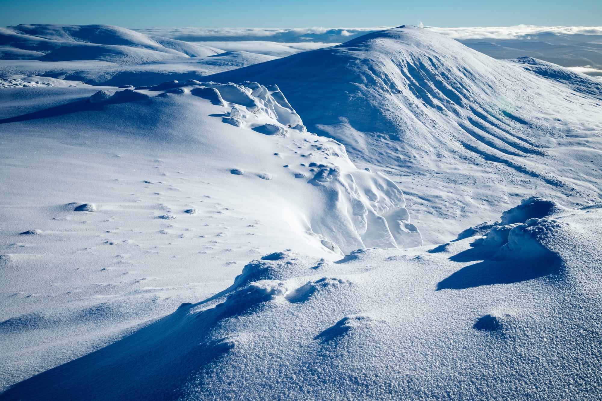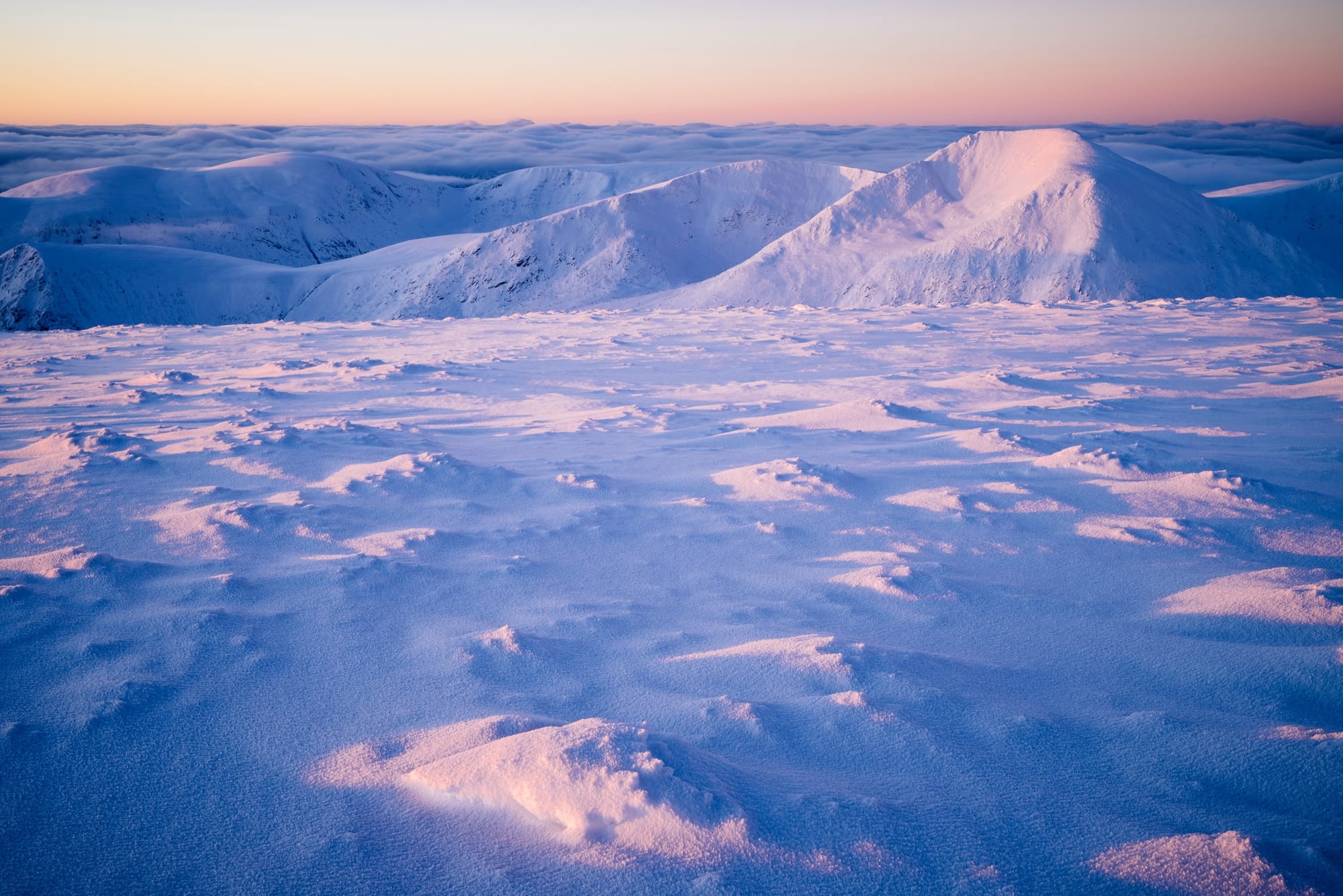 The images are from an exceptionally good multi-day tour in the Northern Cairngorms from January this year. I camped on the summit of Beinn Macdui – a challenging night! My stove turned into a fireball while melting water after dark, but luckily I managed to kick it outside into the snow, where it did a China Syndrome into the snowpack. There's a bit more about this memorable trip in this post from April, but I'm still planning to publish the full story elsewhere.