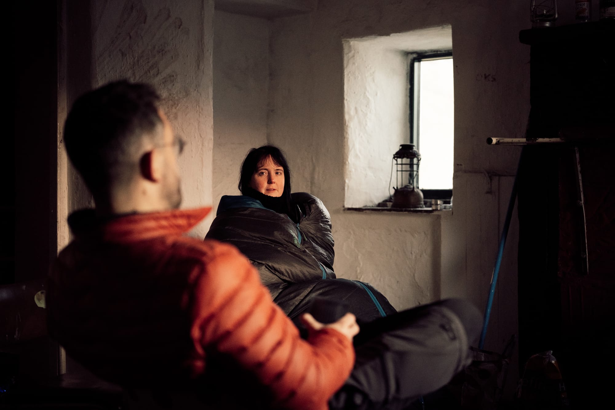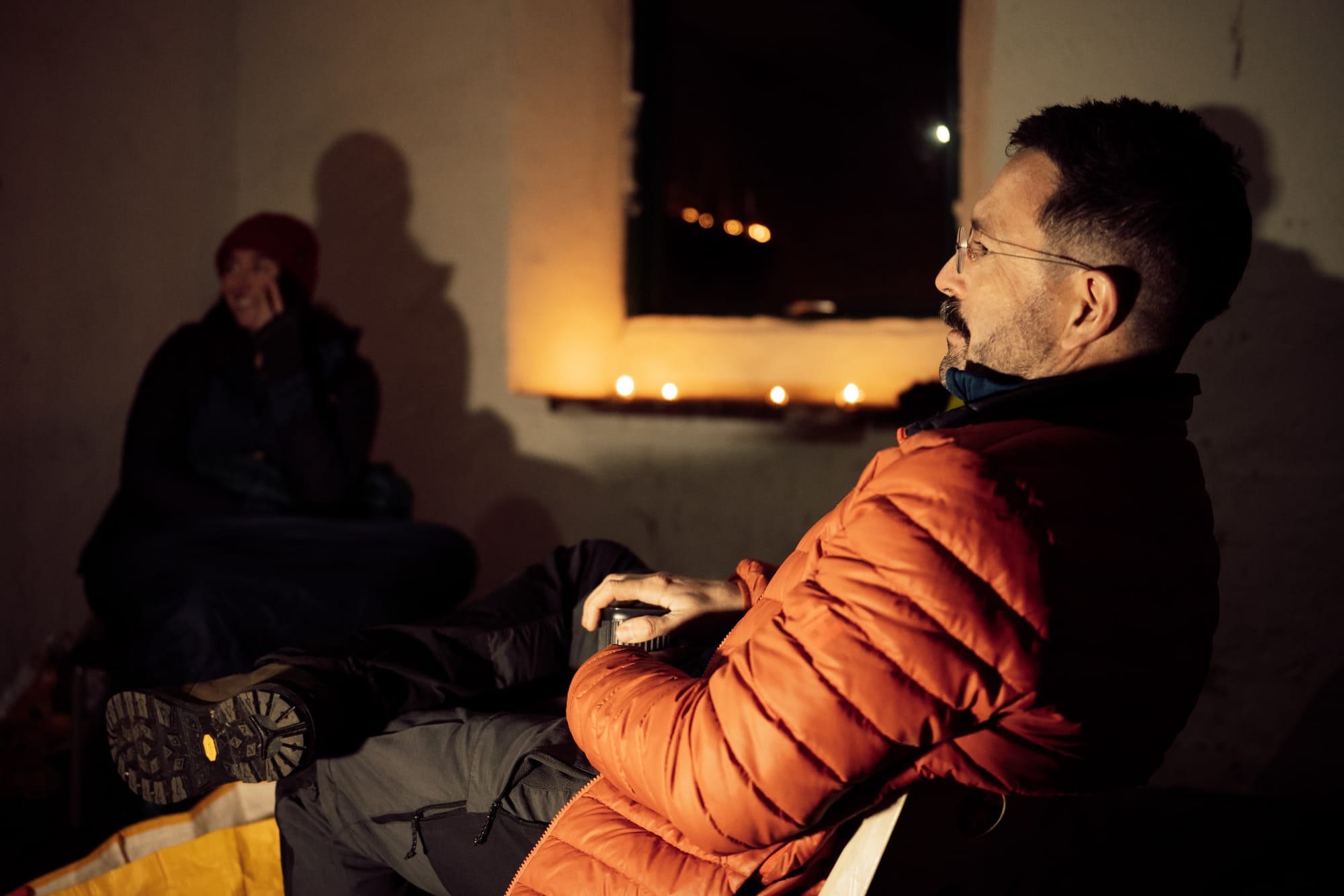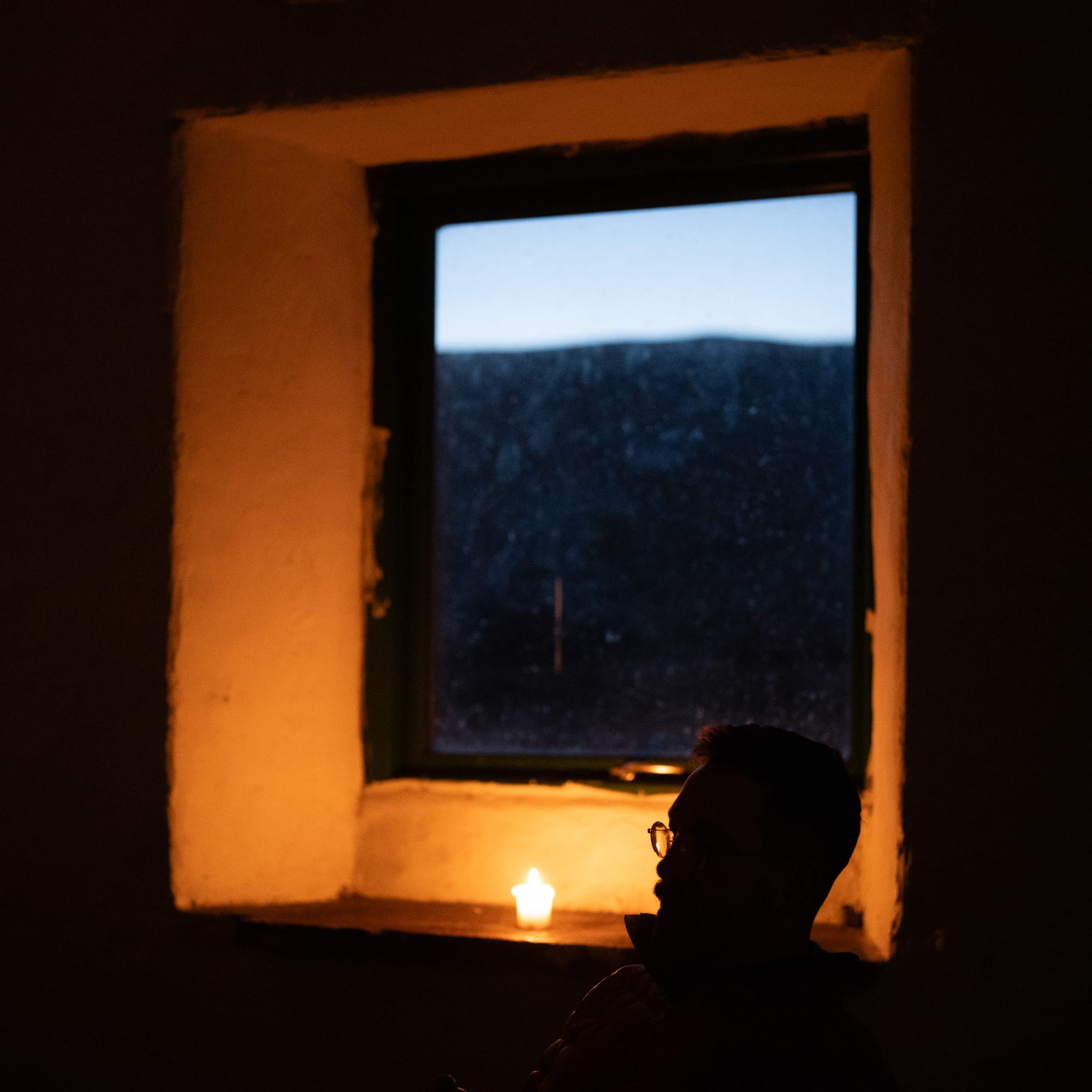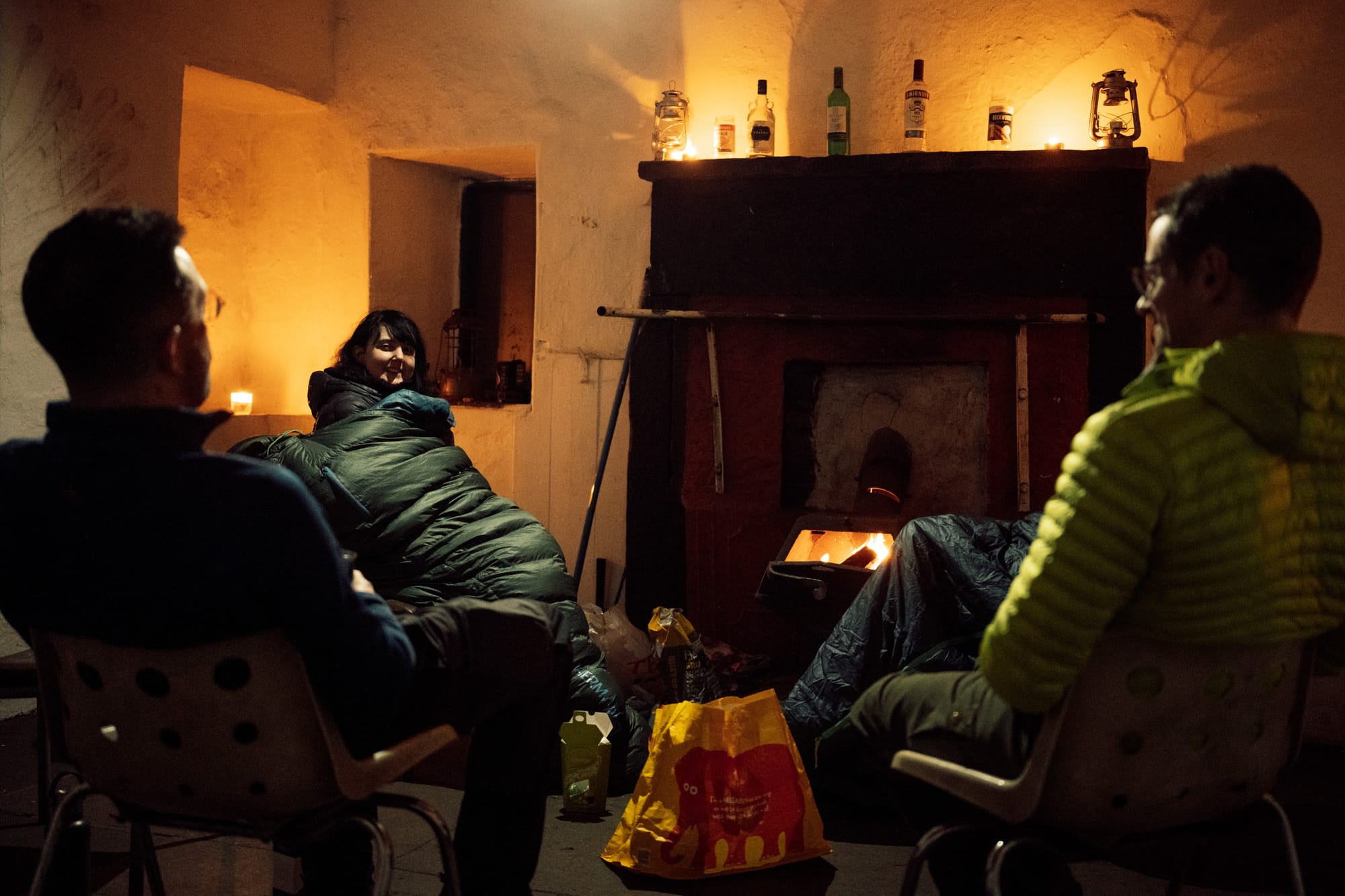 But communion with deep time collapses back into the particulars of the present day when we step over the threshold. Voices always hail a welcome, but each time the welcome is different. There's the warmth of a bothy fire, or perhaps the frigid chill of a stove without fuel; condensation on spectacles, or maybe snow goggles; the curiously disappointing realisation that light comes from cold electric lamps as well as candles. Stepping over the threshold is different each and every time.