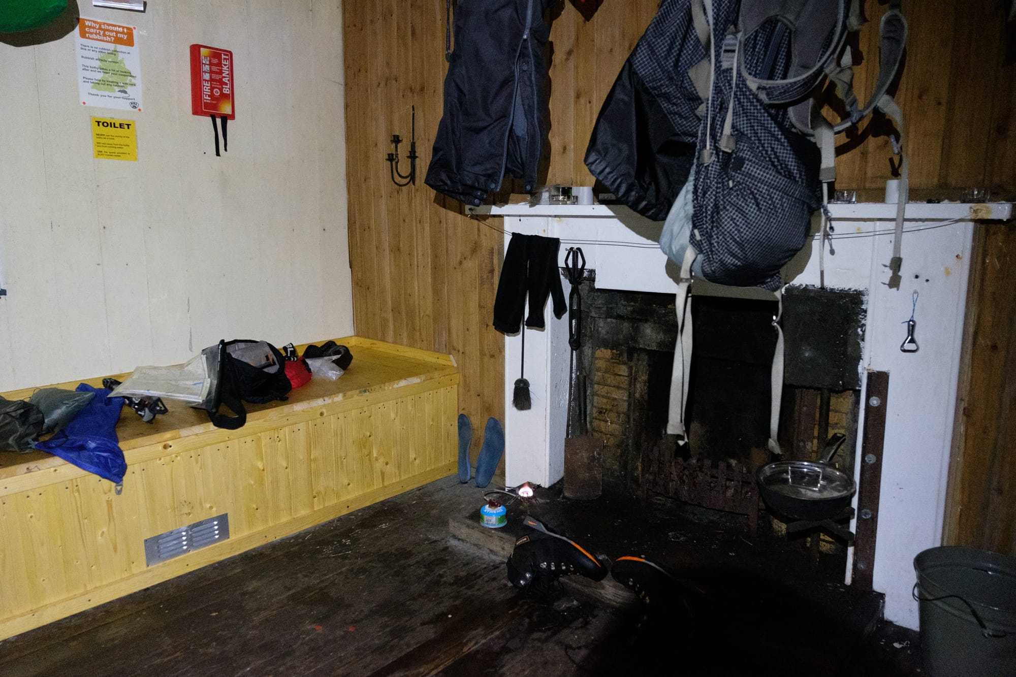 The bothy greeted us, as so many bothies do, only at the last possible moment as we came around the corner of a scrap of forestry. The rectangle of a single window was suspended there before us, aglow with the promise of fire and candlelight and companionship.