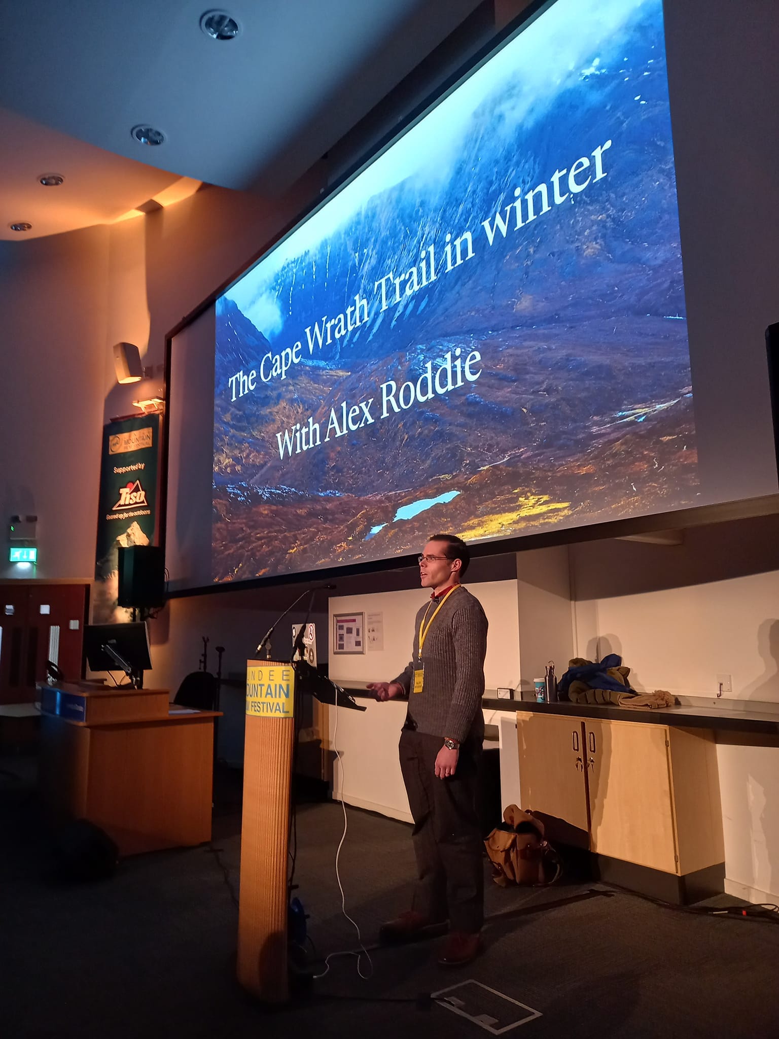 Then it was time for my talk! My role was to give the Irvine Butterfield Memorial Lecture, commemorating the well-known outdoor writer who passed away in 2009. Each year features a different speaker. Oliver Bartrum, President of the Munro Society, introduced me with a few words, and then I began a variant of the winter Cape Wrath Trail talk I have now delivered several times.