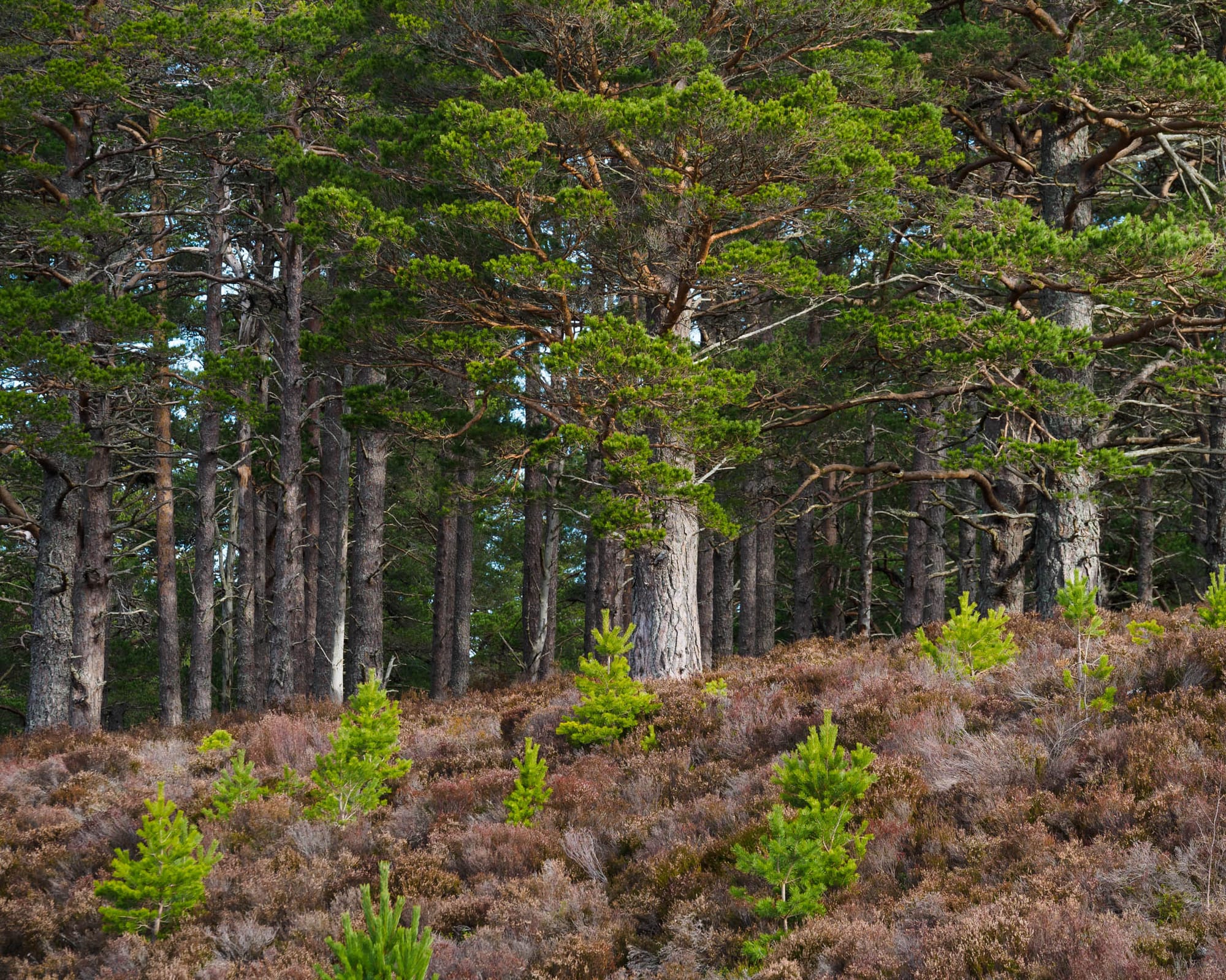 We ambled slowly up through the forest towards An Lochan Uaine (the Green Lochan) and Ryvoan Pass, just above the treeline. This is a magical place where the interplay of forest, moorland, water and mountain creates something greater than the sum of its parts – a place of intricacies and ever-changing complex detail. The young trees seemed to have leapt upwards by a foot or more since my last visit. When Chris and I found a spot to camp next to the River Nethy with a view over to Bynack More, I remarked that the rowan saplings on the other side of the river seemed taller than I remembered. “They are,” he said. “I remember when there were no young trees here at all. This place is changing fast.”