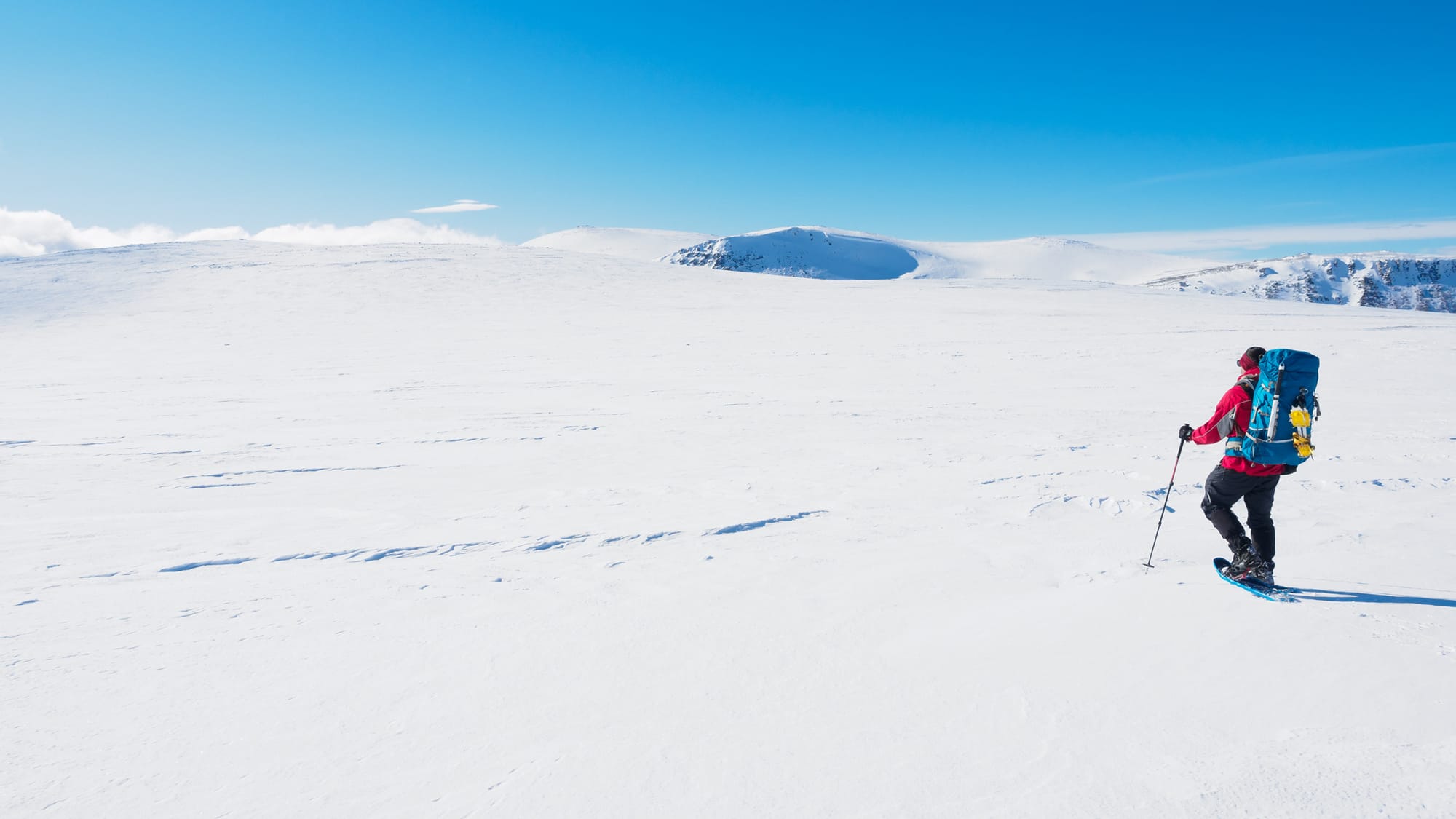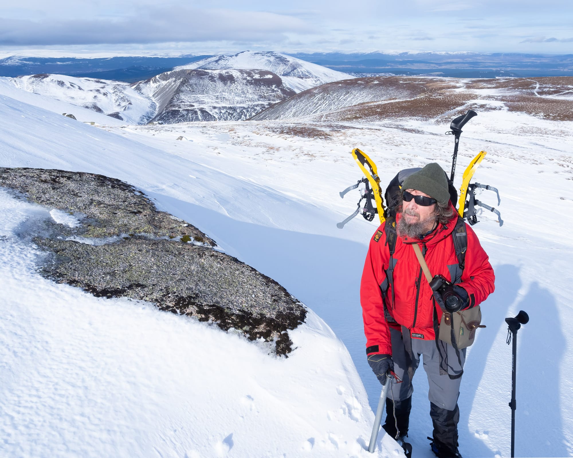 With fine conditions and a clear sky, I could hardly be more excited about the journey ahead over the Cairngorm plateau. Although I briefly donned crampons for the steep descent directly to Loch Etchachan, for the rest of the day until almost back at the ski centre I kept my snowshoes on, and was glad of them.